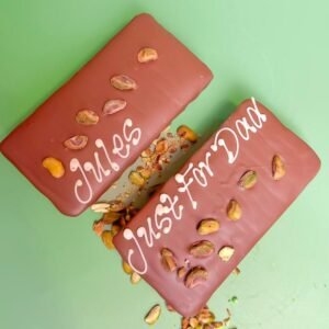 Our bestseller and a true customer favourite. The Pistachio & Kunafah Chocolate Bar is inspired by the famous Dubai-style chocolate, combining rich, nutty pistachio flavours with layers of crispy kunafah, all wrapped in smooth Belgian milk chocolate.